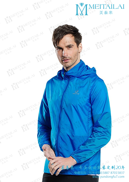 • 蓝色男士夏季户外风衣定制批发